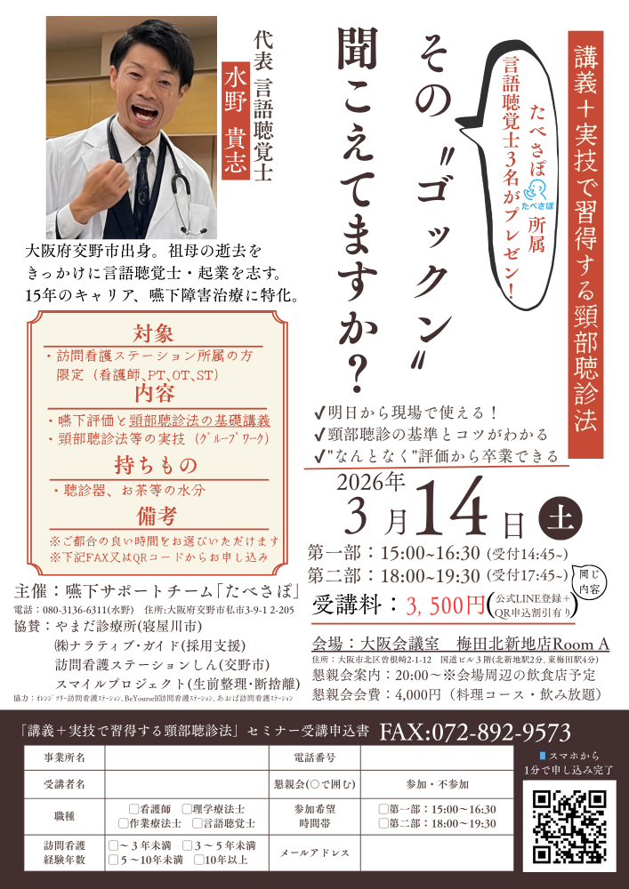 主に訪問看護、歯科・訪問歯科、施設の責任者さまや職員さまへ『摂食・嚥下障害』の学びをサポートいたします。